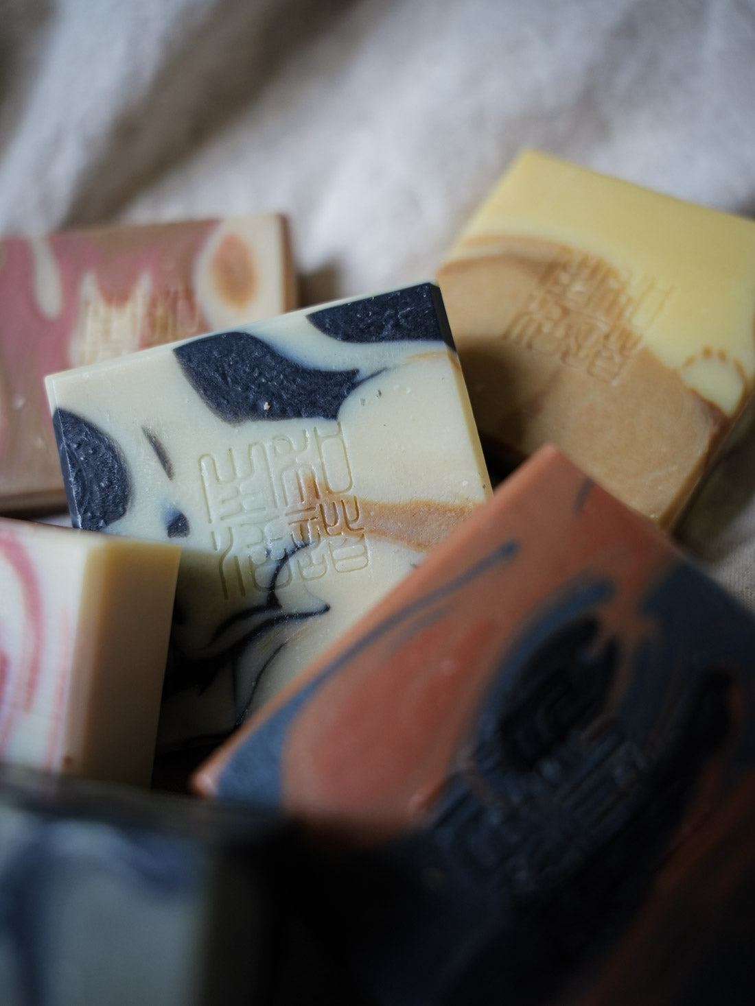 Saponified Avocado oil, Coconut oil, Olive oil, Shea Nut butter (raw), natural clays (Kaolin), Essential oils (100%), Comfrey*, Calendula*, and filtered water. *organic herbs infused into oil.