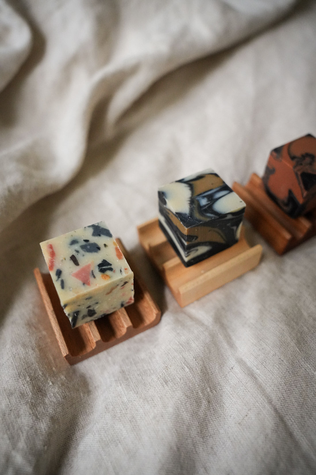 These wood soap dishes were lovingly handmade for our soap bars by a small family business located in Mount Morris, a small town in Michigan.