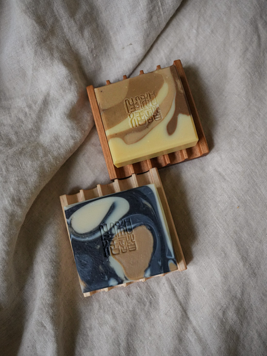 These wood soap dishes were lovingly handmade for our soap bars by a small family business located in Mount Morris, a small town in Michigan.