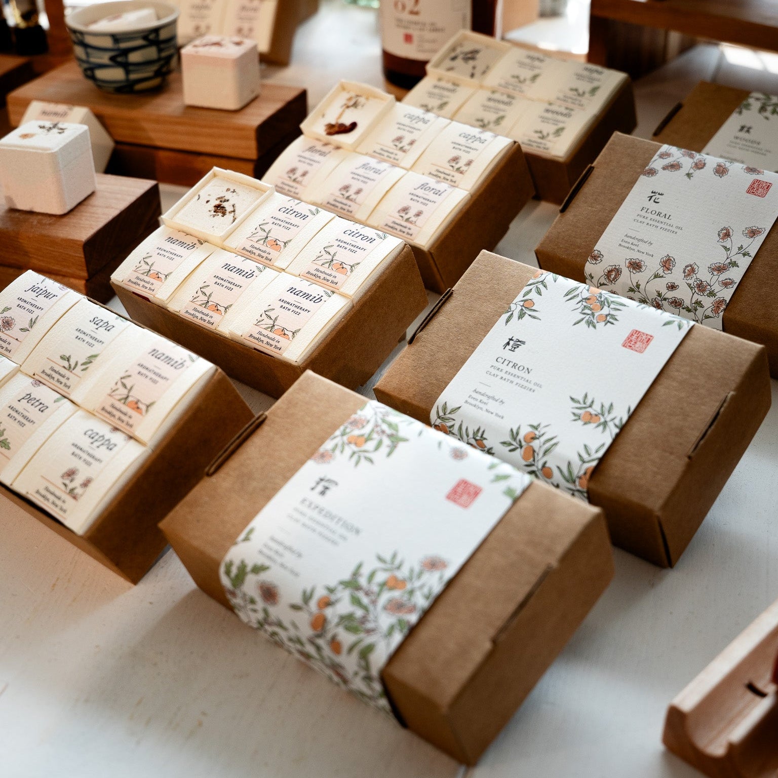 The pieces are designed to complement your existing merchandising — natural, minimal, and built to highlight our full range of products. It's the very same set that we use at our own shows and pop-up.